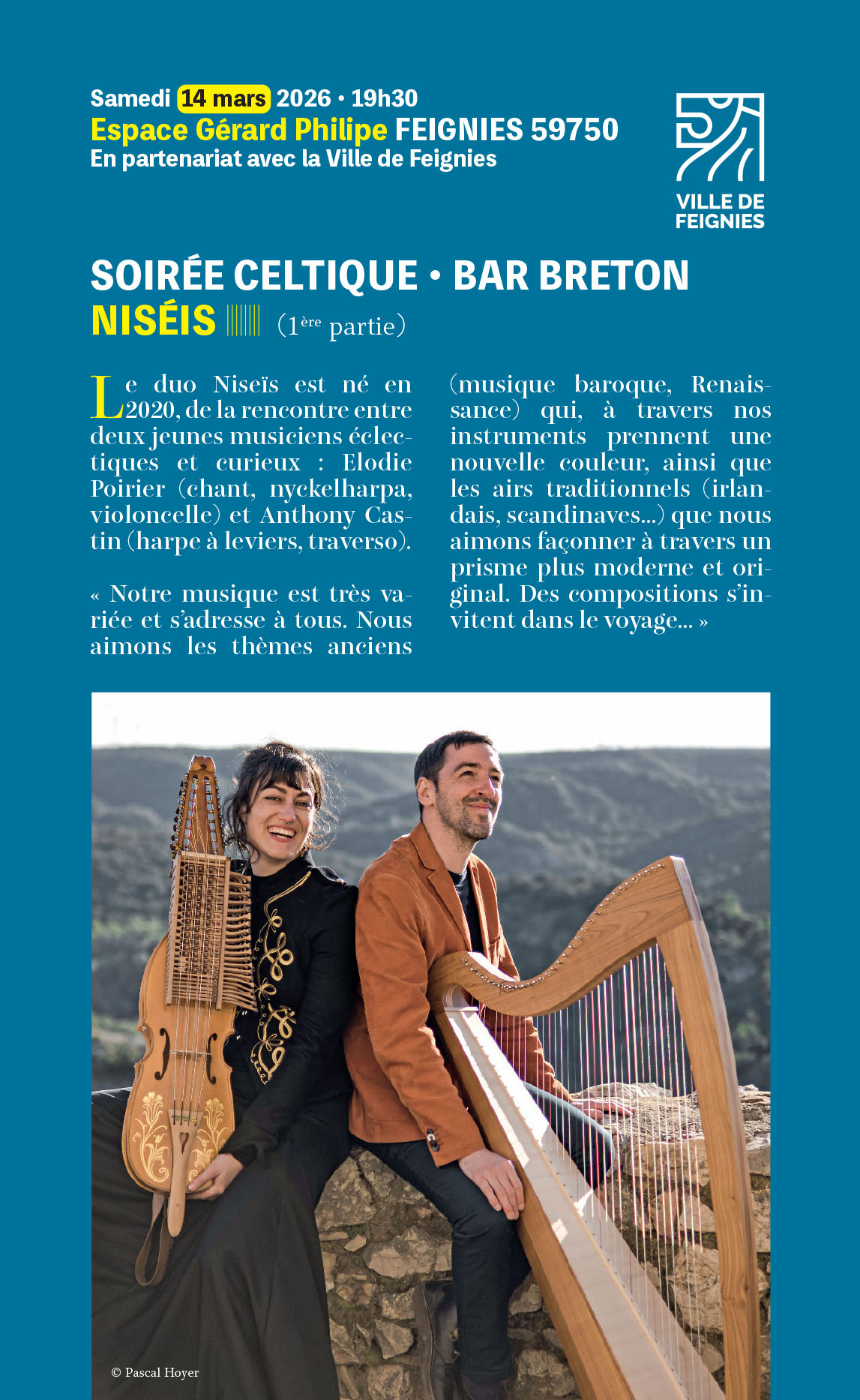Harpes celtiques, cornemuse, chant, danse |