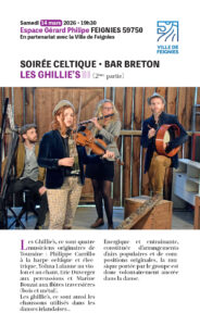 | Harpe celtique, violon, chant, percussions, flûtes traversières |