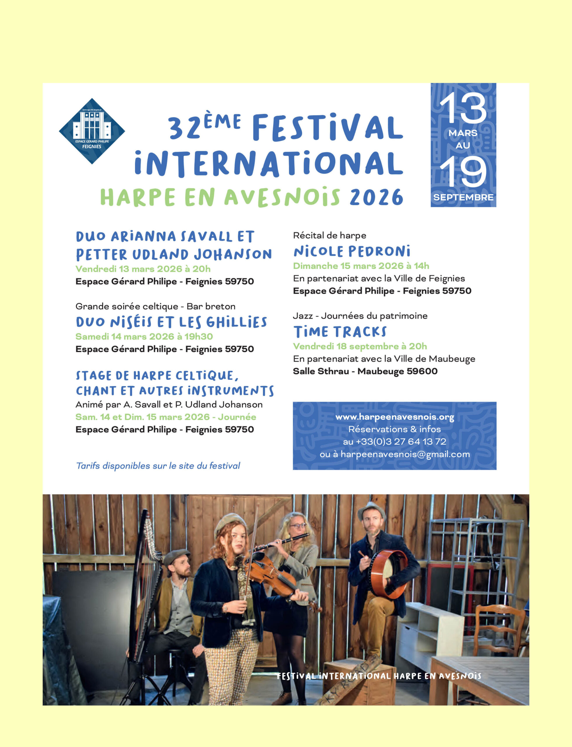 | Harpe, traverso, chant, nyckelharpa, violoncelle |