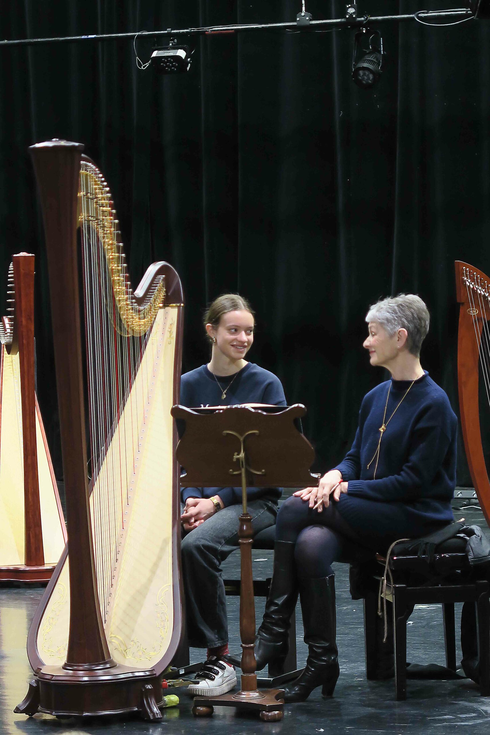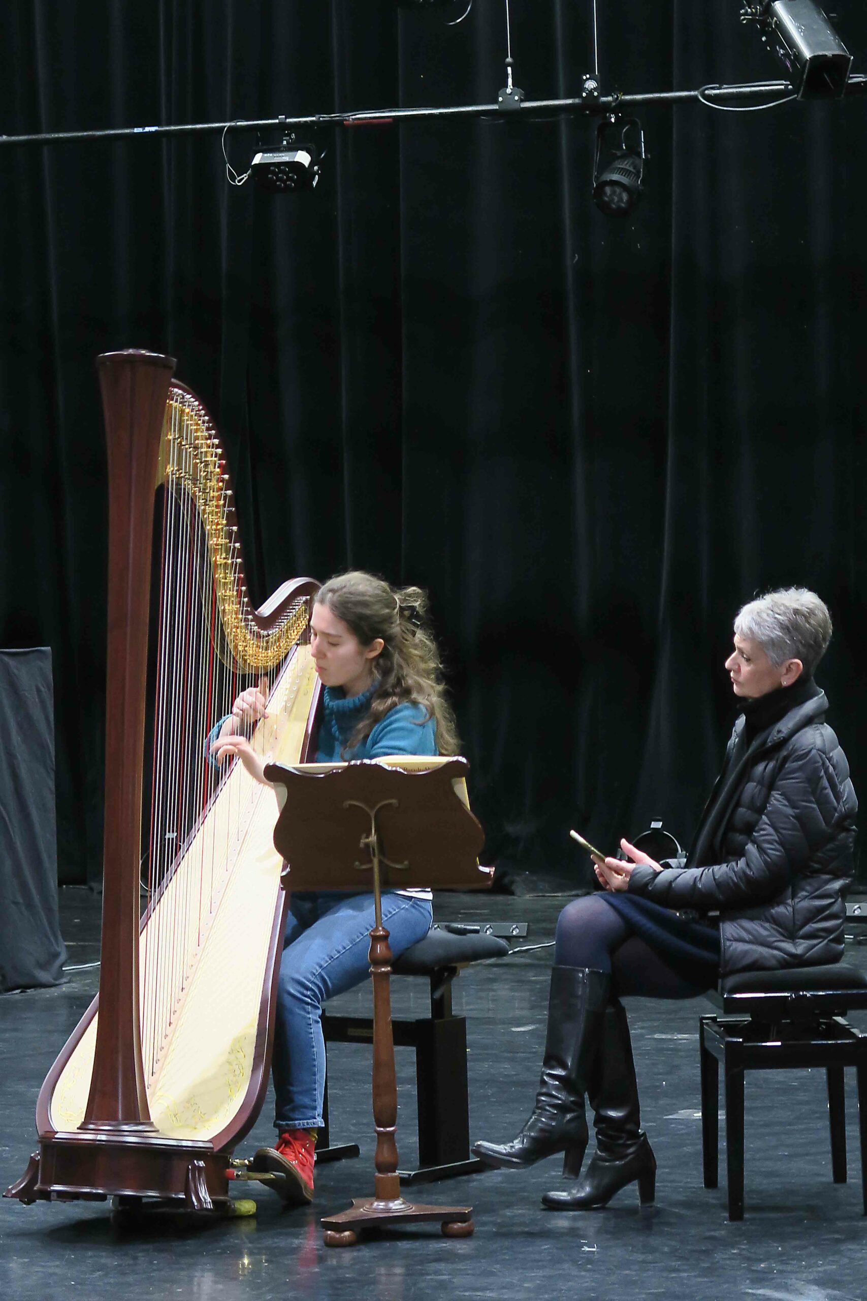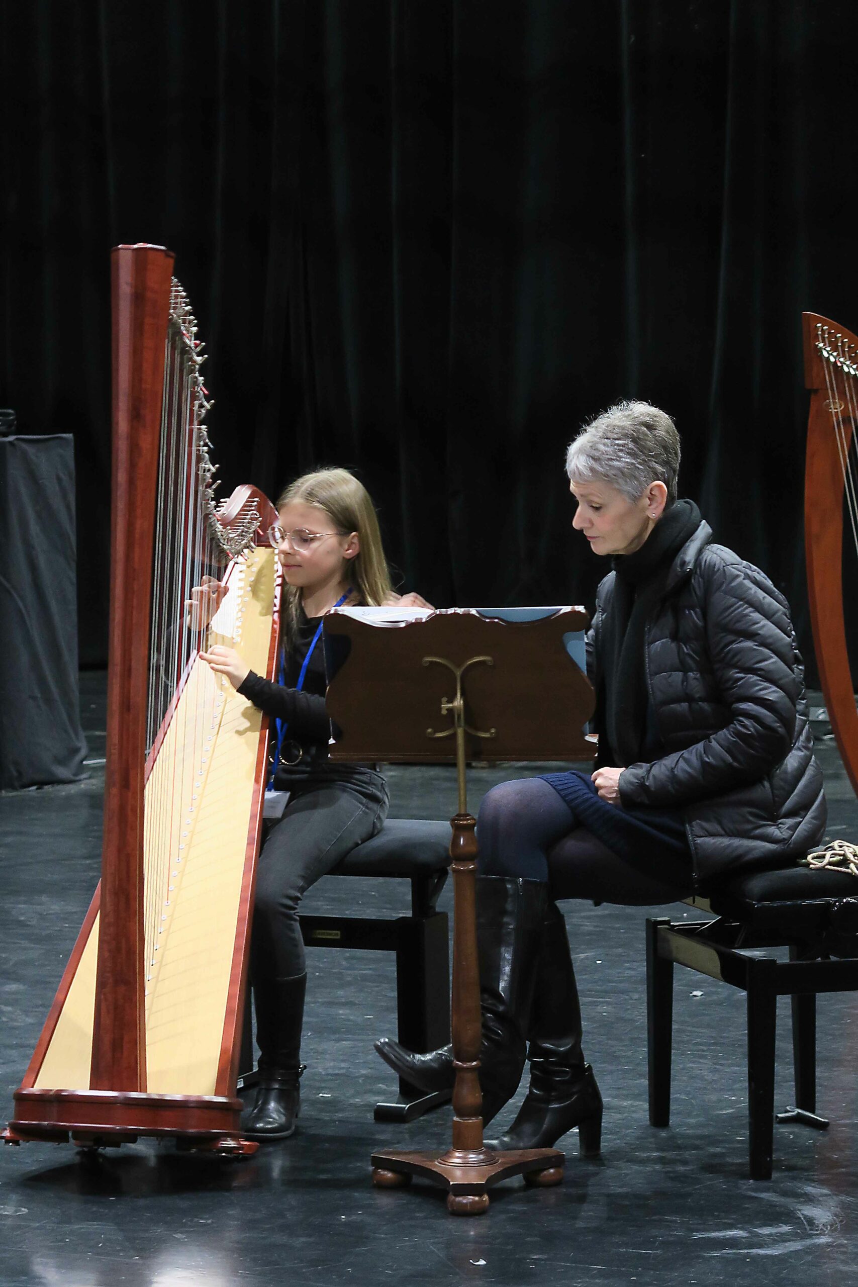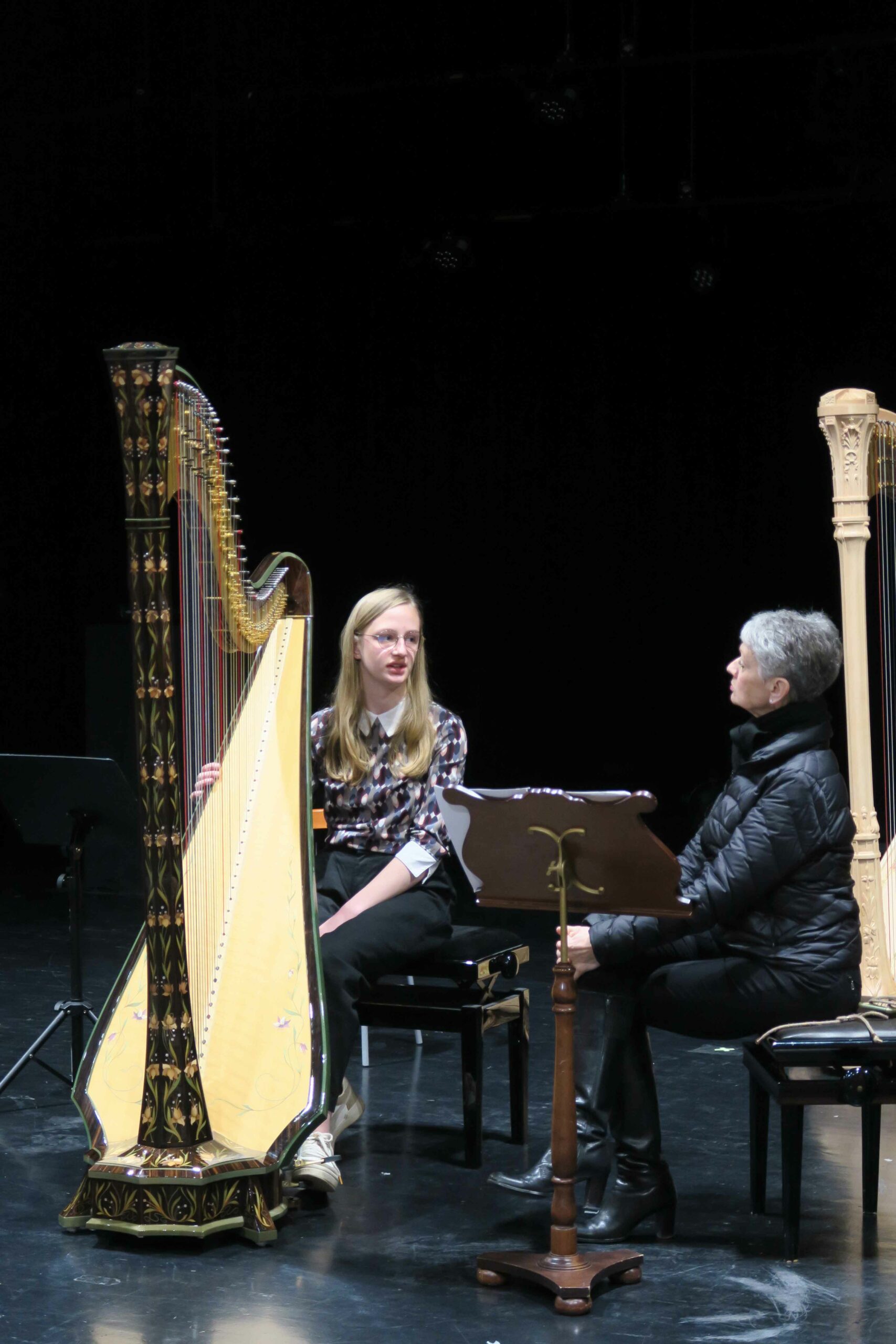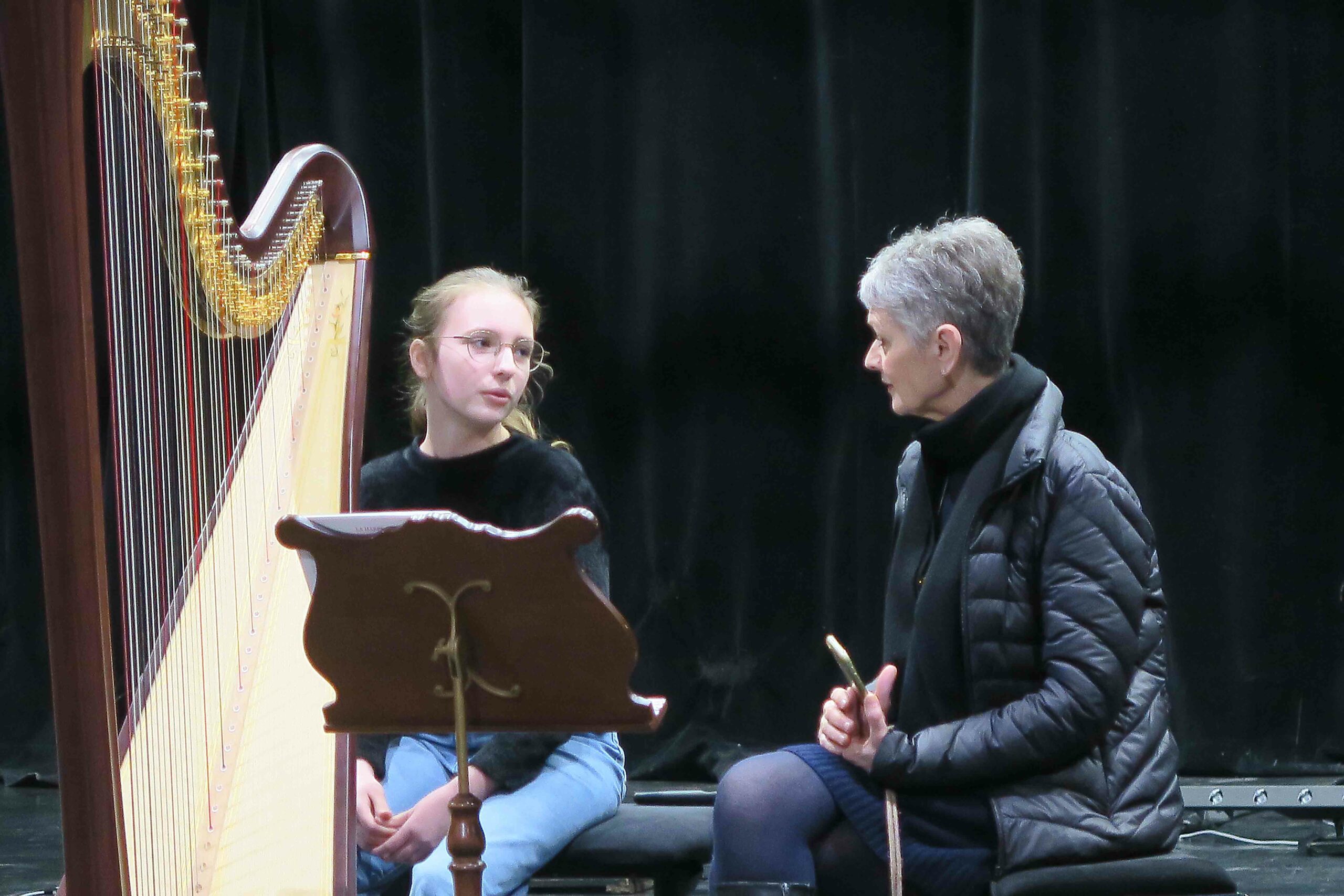 Toutes ces qualités, et cette grande générosité se trouvent réunies en la personne de l’invitée d’honneur de la master class (classe « de maître », n’oublions pas la traduction française…), Isabelle Perrin, qui après avoir occupé de nombreux postes, est actuellement professeur de harpe et directrice du département cordes à la Norges Musikkhøgskole à Oslo (Norvège).